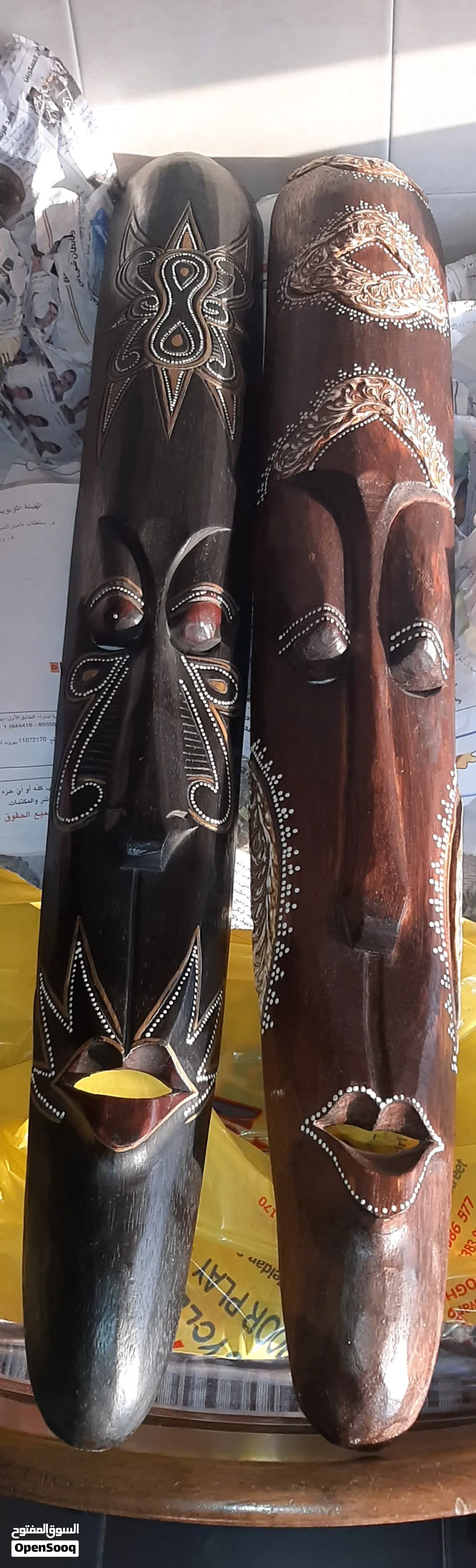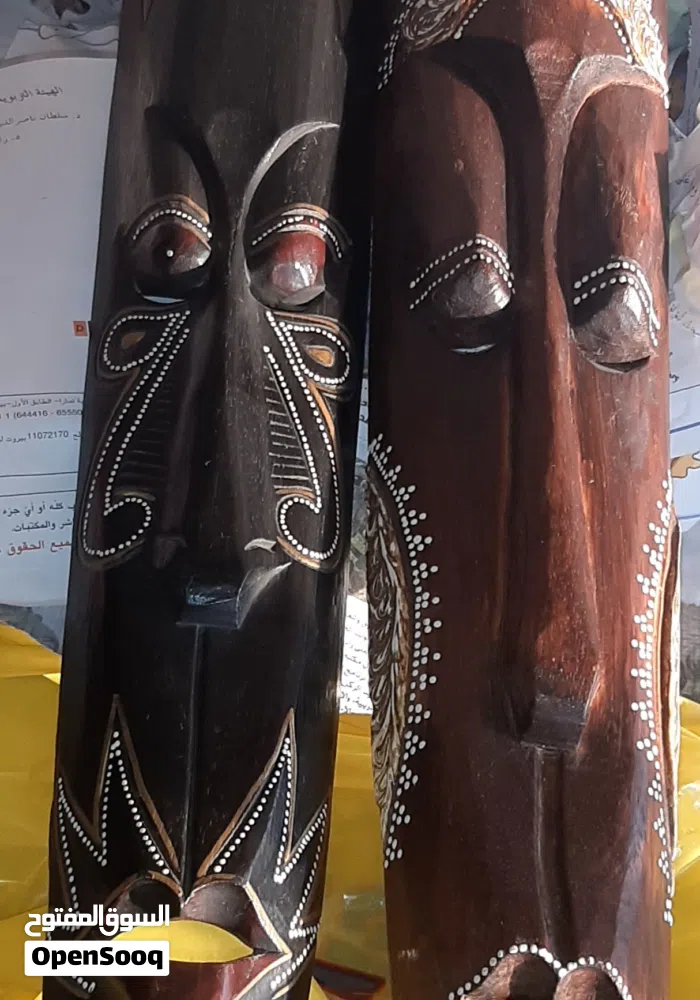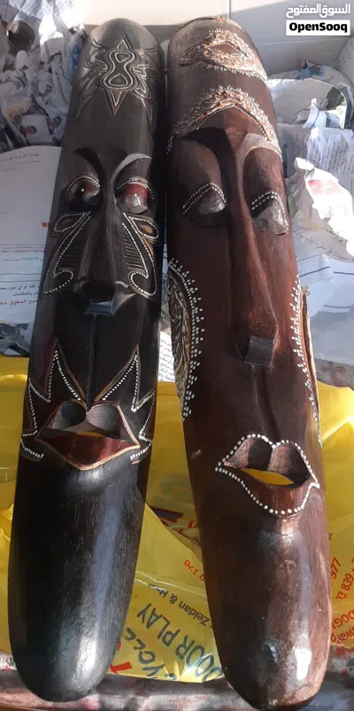 ديكور وجوه فنية أفريقية من الخشب عالي الجودة، قابل للتفاوض .يوجد توصيل