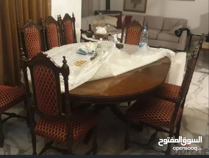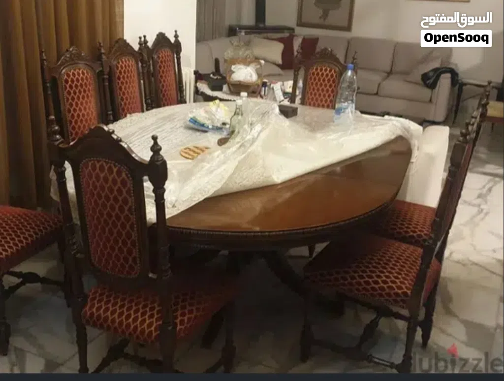 طاولة جلوس مع 8 كراسي مزخرفة أثرية خشب ضخم