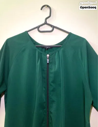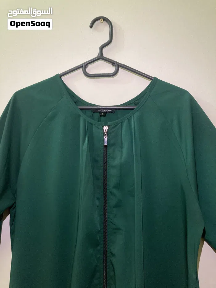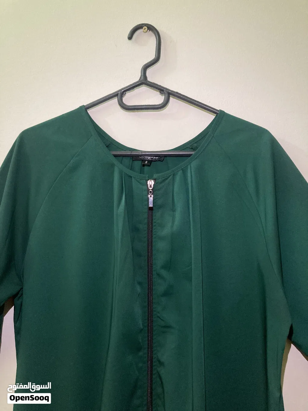 فستان أخضر غامق أنيق بسحّاب – قياس 48 – مستعمل بحالة ممتازة