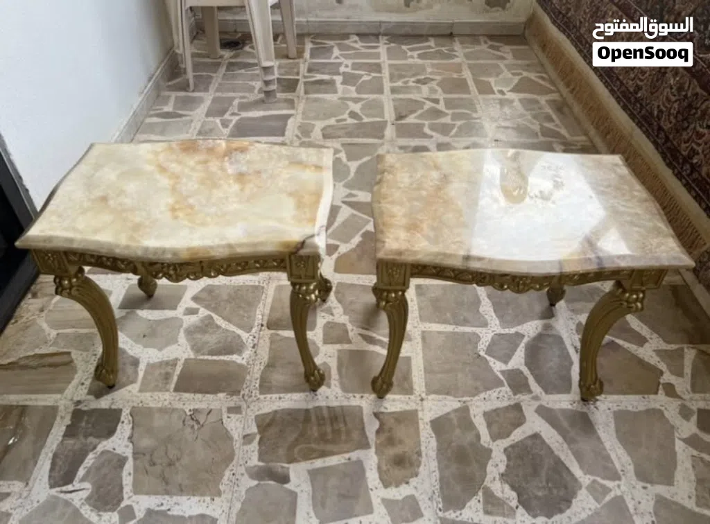 • طاولتين جنب بسطح رخام طبيعي أصلي