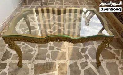 • طاولة قهوة كبيرة بسطح زجاج