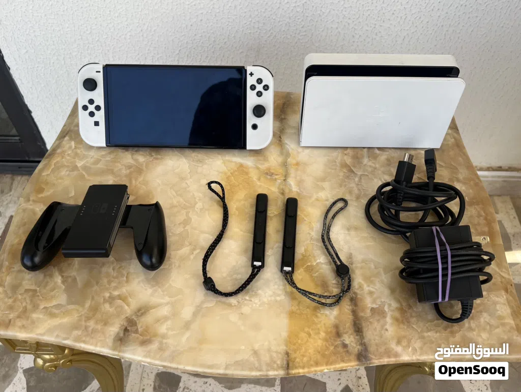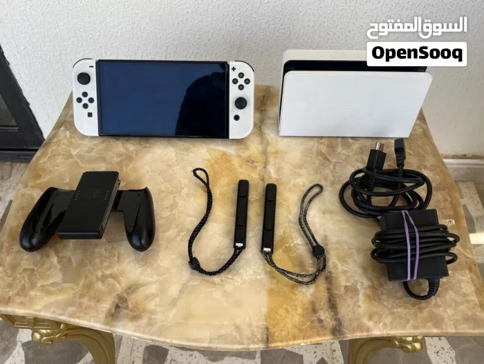 للبيع: Nintendo Switch OLED (أبيض) — مستعمل استعمال خفيف جداً، وكامل مع كل الملحقات الأصلية.