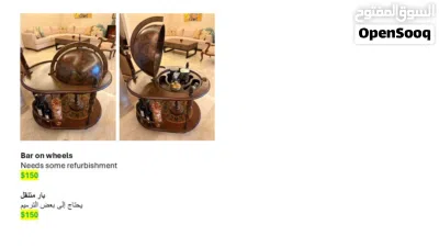 ما هو عدد الإعلانات في طاولات قهوة وطاولات جانبية على السوق المفتوح؟