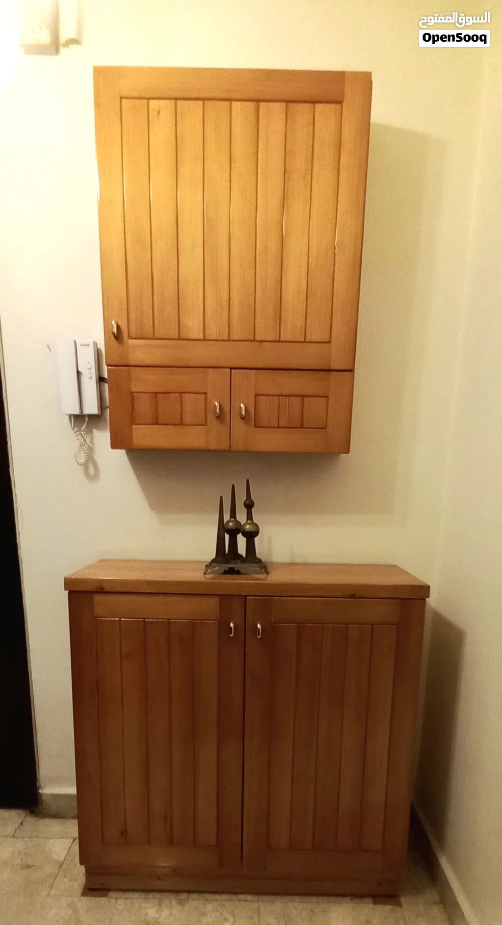 خزانة مدخل قطعتين من خشب اللاتيه وخشب السويدي المدهون طابقين