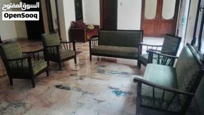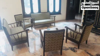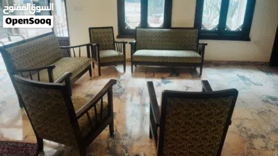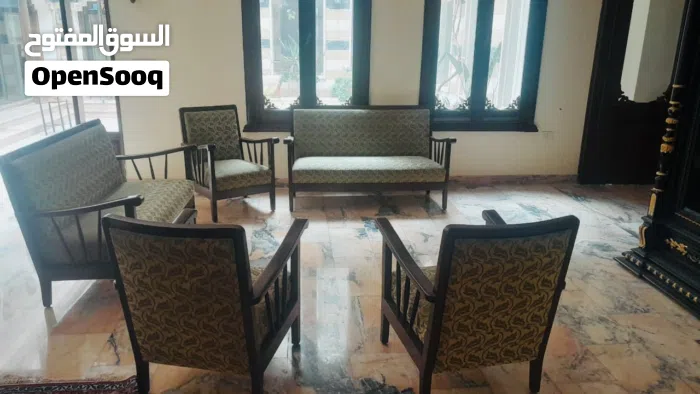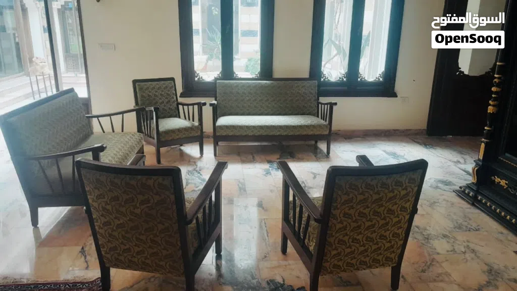 كنبتان 3 اشخاص وخمسة مفرد خشب قديم ونادر ومنجد مع قماش حديث ستايل شي موريس كلاسيكي
