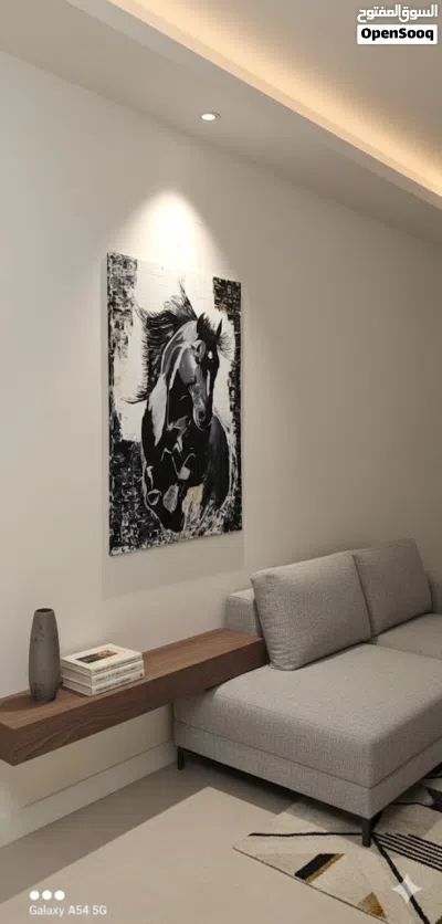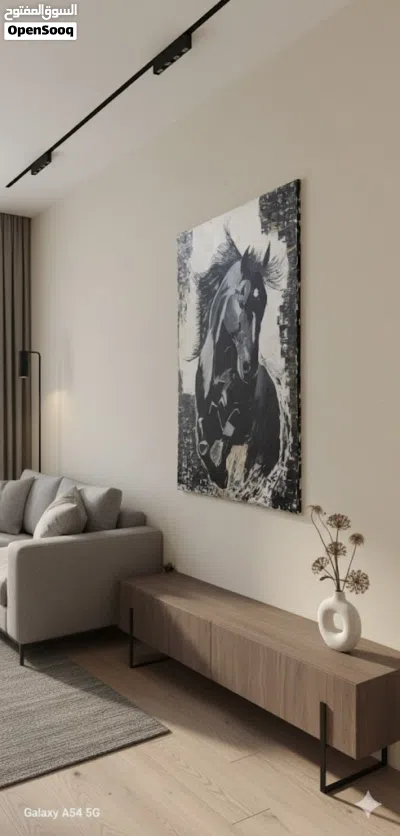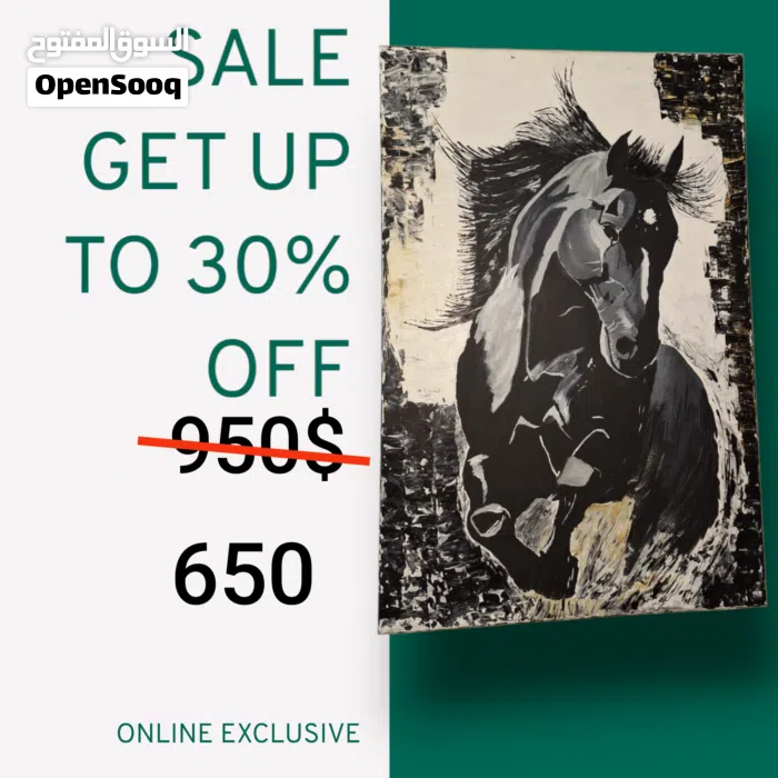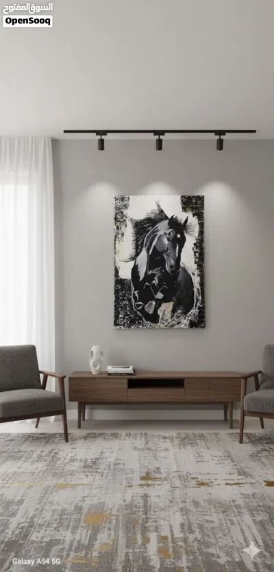 تجسّد اللوحة حصانًا أسود في لحظة اندفاع وقوة، يرمز إلى الحرية والعزيمة التي لا يمكن كسرها.