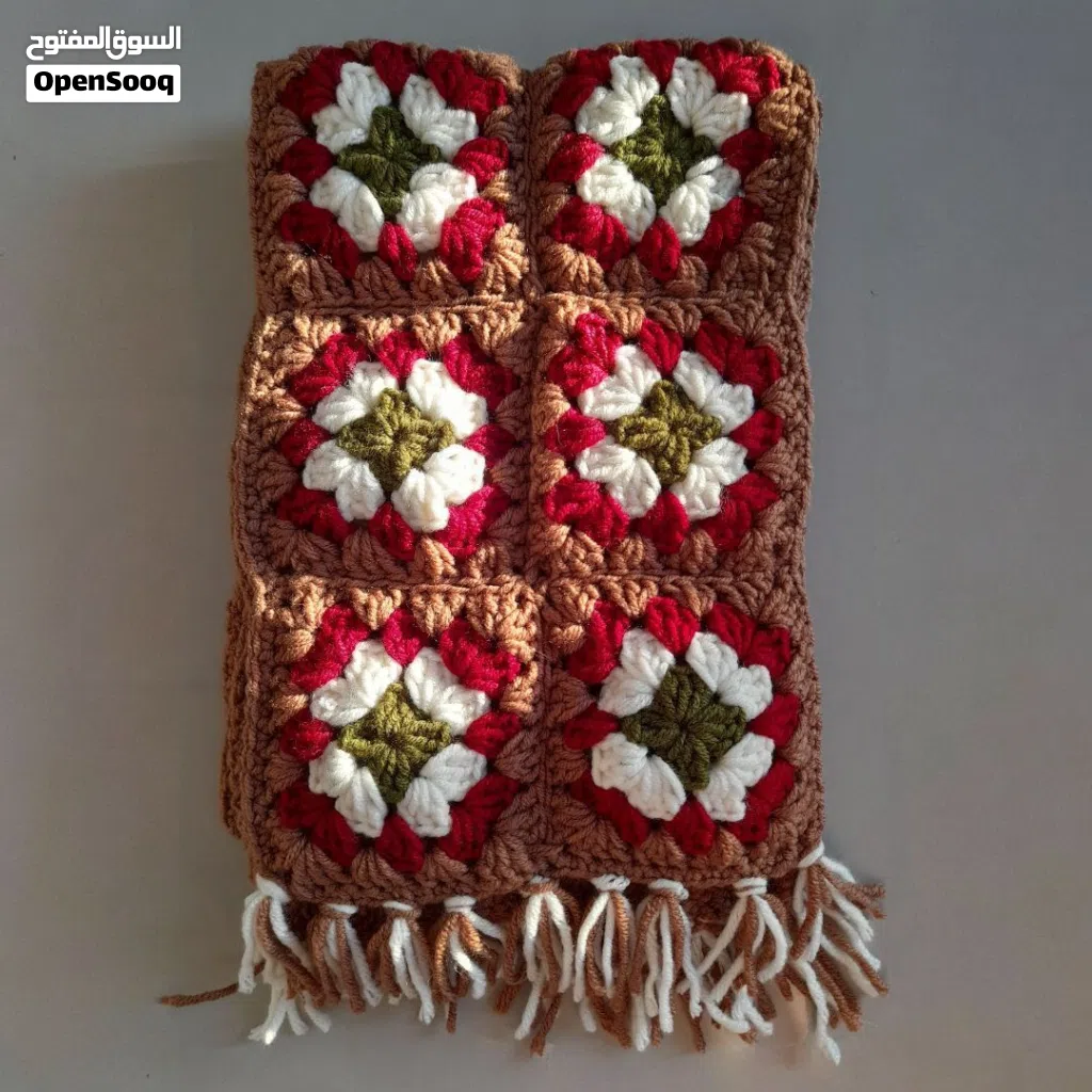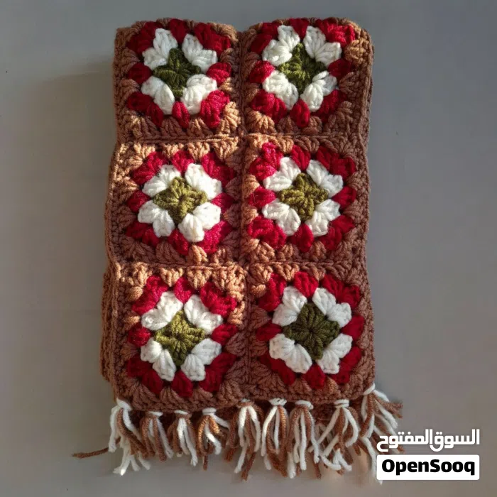 Handmade chunky crochet song scarf brown white dark red and dark red adult size