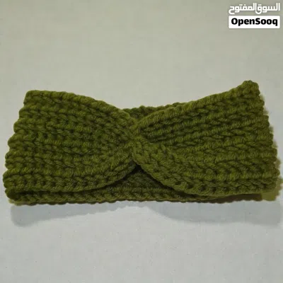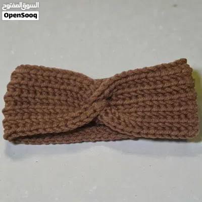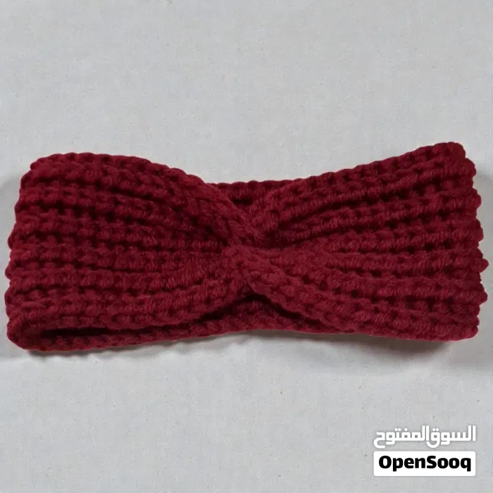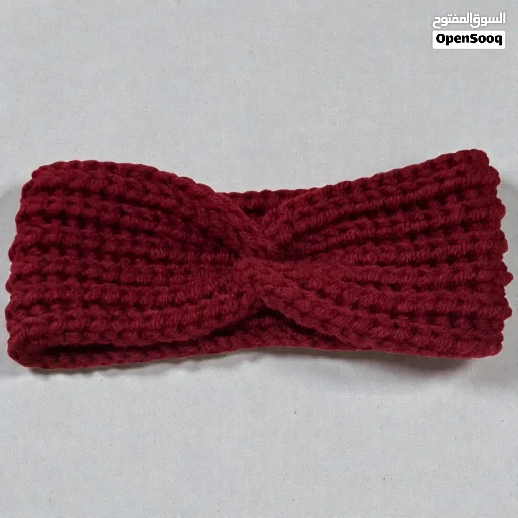 handmade crochet ear warmers/headbands, adult size, dark red green light brown and royal blue